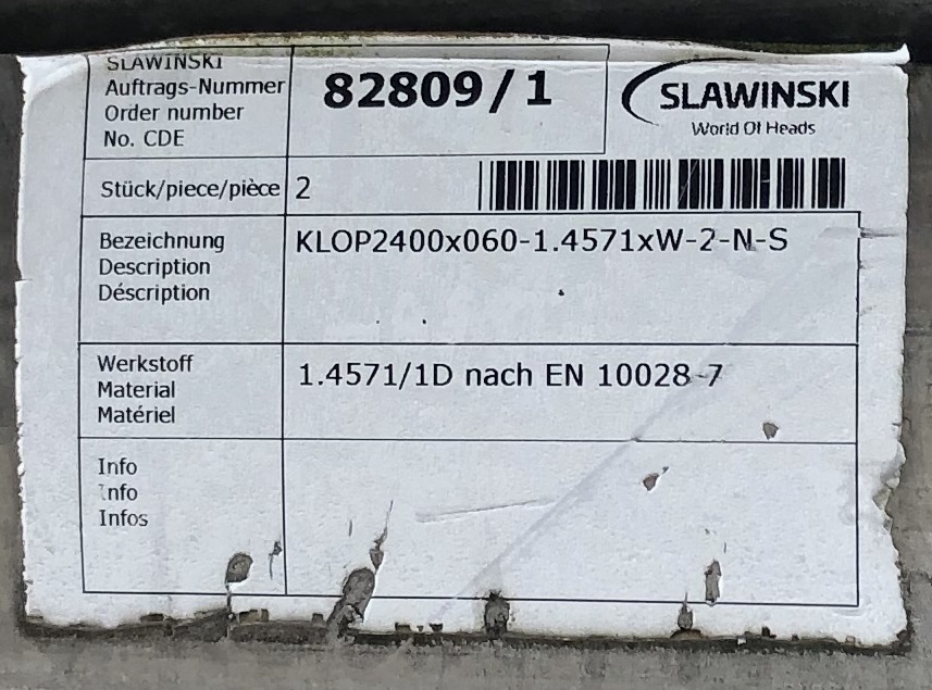 Klöpperböden KLOP2400x060-1.4571xW-2-N-S Durchmesser 2400 mm