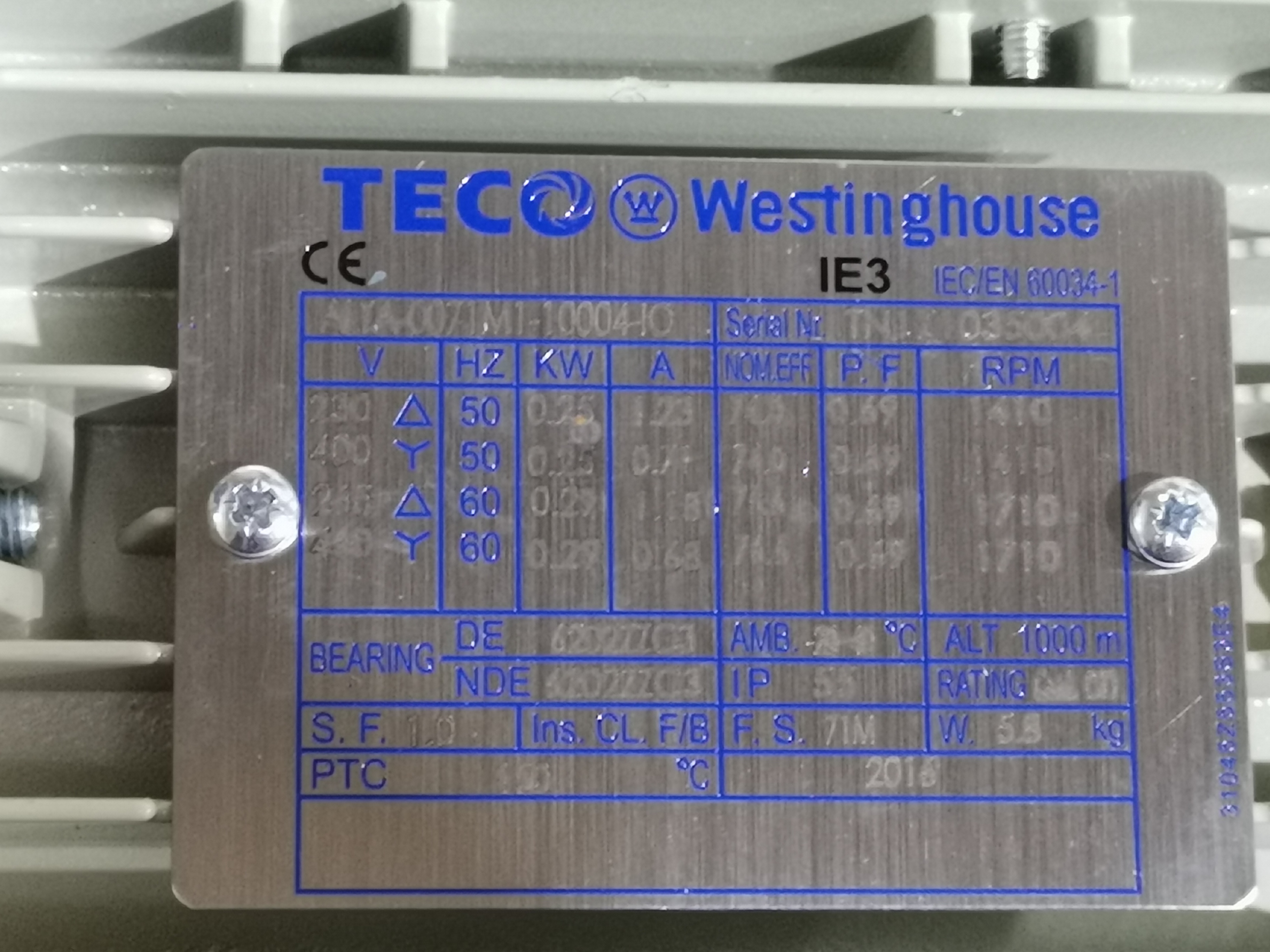 239/400V; 50Hz; 0,25 kW