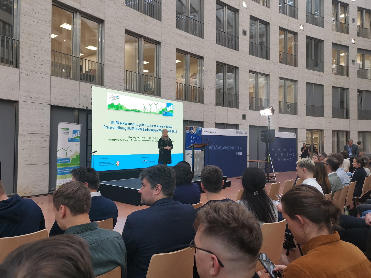 Ein Mini-Pitch vor dem Publikum gehörte genauso dazu wie ein Stand im Catwalk der grünen Gründungen. Oliver Krischer überreichte mit Frau Dr. Günther die Preise. Es war ein toller Nachmittag mit vielen guten Gesprächen mit bekannten und neuen Gesichtern.